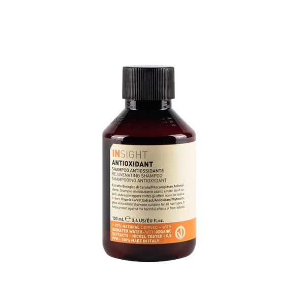 Шампунь антиоксидант INSIGHT предназначен для защиты волос и кожи головы от негативных факторов: смены погоды; термических или механических повреждений при укладке; химического воздействия. Более 98 процентов компонентов в нем – натурального происхождения. Масла сои, лесного ореха и жожоба укрепляют структуру волос, улучшают их эластичность, защищают от сечения. Экстракт моркови активно увлажняет и омолаживает локоны. Шампунь ИНСАЙТ не содержит парабенов и агрессивных сульфатов. Имеет очень мягкую моющую основу из кокосовой выжимки. INSIGHT Antioxidant Shampoo выпускается в разных по объему упаковках: 100, 400 и 900 мл.