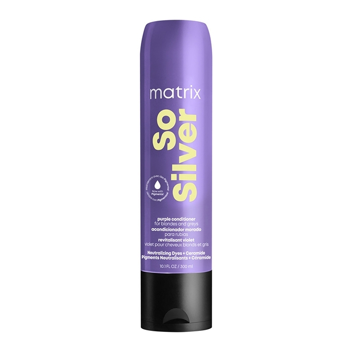 Профессиональный фиолетовый кондиционер So Silver, обогащенный керамидами, содержит пигменты, специально подобранные для блонда и седых волос. Помогает убрать нежелательную желтизну, увлажняет, усиливает блеск, придает мягкость.