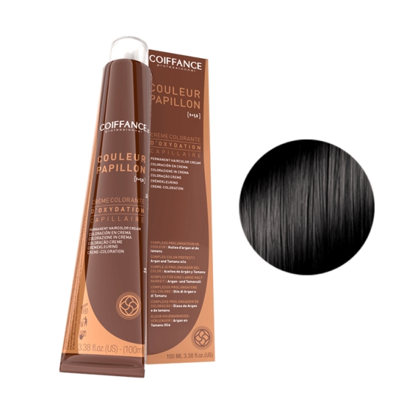 Гибридный краситель высокого качества, который успел завоевать доверие среди ведущих парикмахеров-стилистов и стал фаворитом клиентов по всему миру. С его помощью, парикмахеры добиваются ярких и роскошных оттенков, сохраняя здоровье и силу волос. Краситель высочайшего качества позволяет не только обеспечивать полноценную защиту волосяного покрова во время процедуры покраски. Coiffance Color Papillon также способствует восстановлению волос, питая корни полезными микроэлементами. Насыщенный растительный комплекс в составе красителя: масла Арганы и Таману, экстракты Васаби японской, Лебеды, Розмарина, Амбры - полная защита и восстановление волос во время окрашивания. Масло Арганы содержит высокую концентрацию олиголинолиевых кислот, которые замедляют процесс старения волос, глубоко питая кутикулу. Масло Таману возвращает естественную увлажненность волосяному стволу. Комплекс двух масел возвращает волосам роскошный блеск и гладкость надолго. Розмарин содержит жизненно важные минералы и более 20 видов антиоксидантов. Сочетаемость всех 104 цветов позволяет создать индивидуальный оттенок для любого клиента. Гарантия насыщенного стойкого цвета со 100% покрытием седых волос. Экономичная упаковка 100 мл, разведение 1:1,5, Блонды 1:2. Минимальное содержание аммиака (в разведенном состоянии 1,5% аммиака), отсутствие химических запахов во время окрашивания, что комфортно для колориста и для клиента.